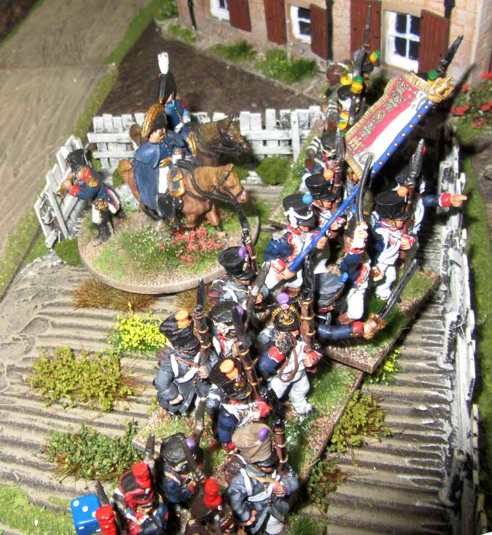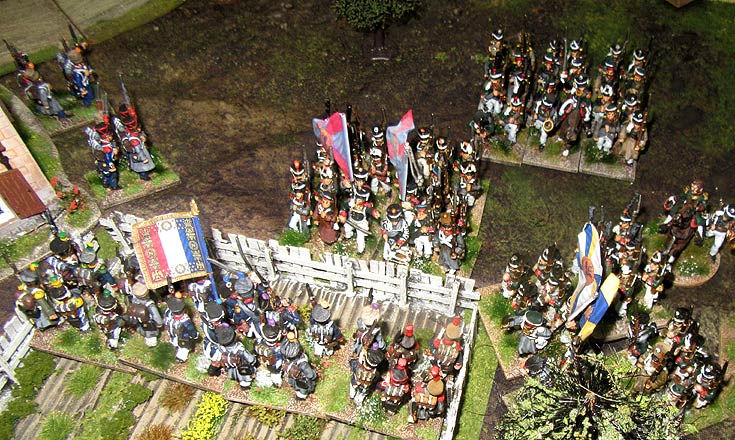 The first assault was thrown back, by the French battalion of the 108th Ligne, which was deployed in the vegetable garden which had been the target of the Russian attack. the Russians pulled back to lick their wounds, while for the French General de Division Dessaix, arrived to restore flagging morale.