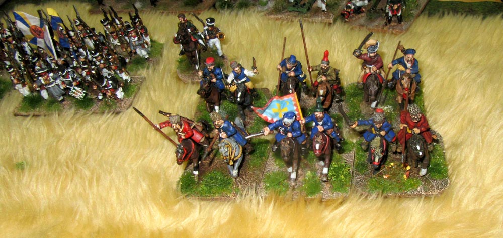 What should have been an easy win for the French, turned into a humiliation, as the hussars came off worst, and retired towards the table edge. The Cossacks were battered too though, and retired behind their guns. Now though, the Russians were ready for another attack, this time supported by their gun batteries. this was going to be a tough fight!